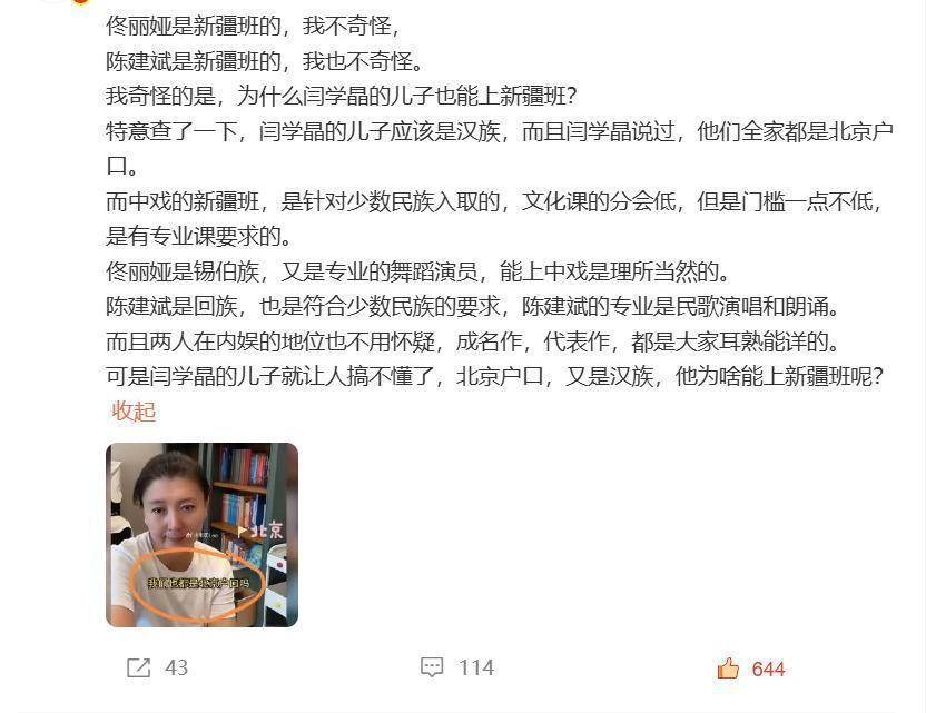 可林傲霏这情况就邪门了。闫学晶自己说过全家都是北京户口,儿子妥妥的汉族娃。这就好比拿着北京户口的考生,非要去挤少数民族的升学通道,怎么看都透着股不对劲。