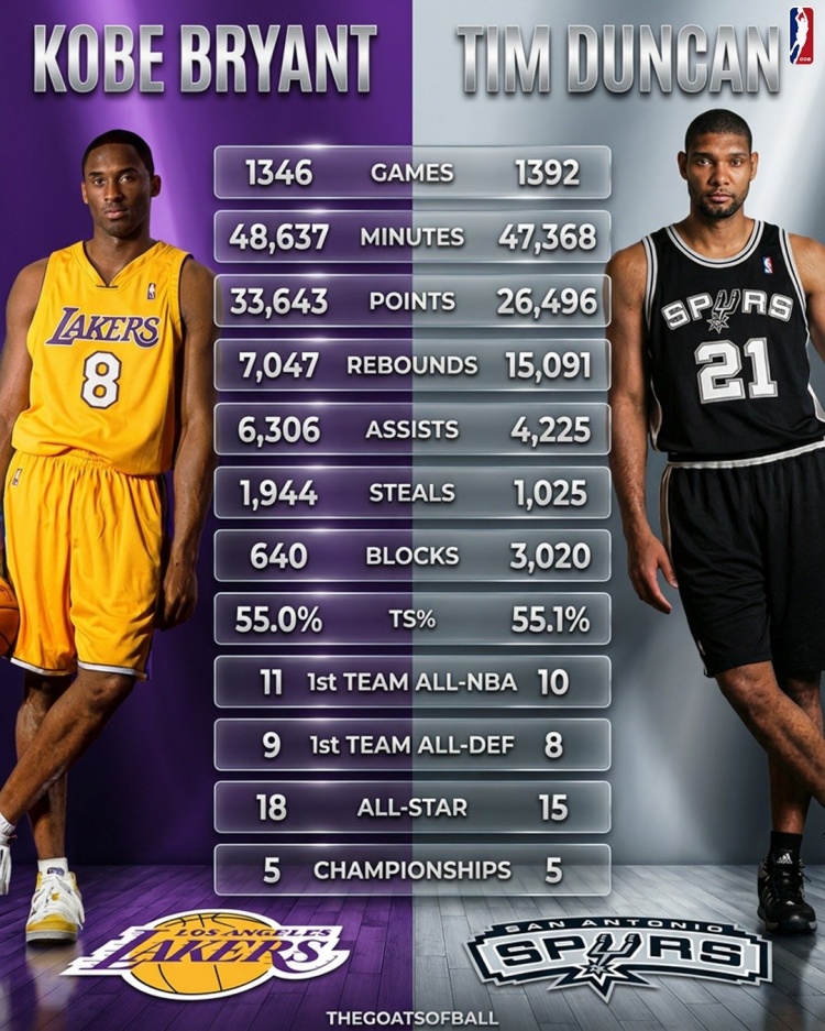 开云app-谁历史地位更高?科比&邓肯生涯数据、荣誉多项对比!